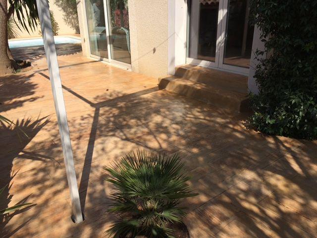 À Lansargues, l'exposition solaire et l'humidité des abords de piscine mettent les matériaux à rude épreuve. Notre solution de béton texturé et marqué permet de reproduire fidèlement le veinage et les nœuds du bois, tout en garantissant une surface monolithique qui ne gondole jamais.